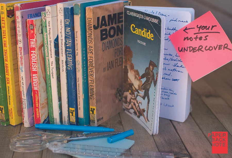 Each notebook is hand-assembled and contains stitch-bound blank pages allowing the book to open flat, as well as rounded corners and an embossed logo on the back cover. The size is approximately 11cm x 17cm x 1.2cm with 30-60 pages (depending on the thickness of the original book).